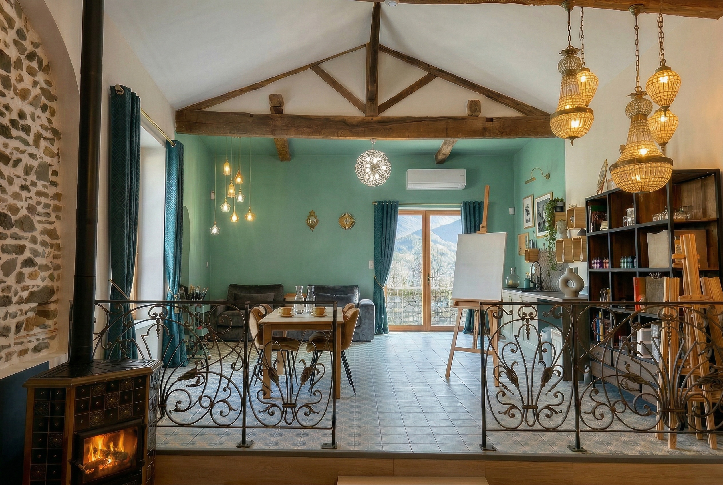 Ici, l’ambiance est à la fois studieuse et profondément conviviale. Entre mon espace de création privé et la partie dédiée aux cours en petits groupes, tout est fait pour que vous vous sentiez immédiatement à votre aise. Le poêle à bois crépite l’hiver pour une atmosphère chaleureuse, tandis que la fraîcheur de la clim prend le relais l’été : j’ai veillé à chaque détail pour que votre seule préoccupation soit votre geste artistique.